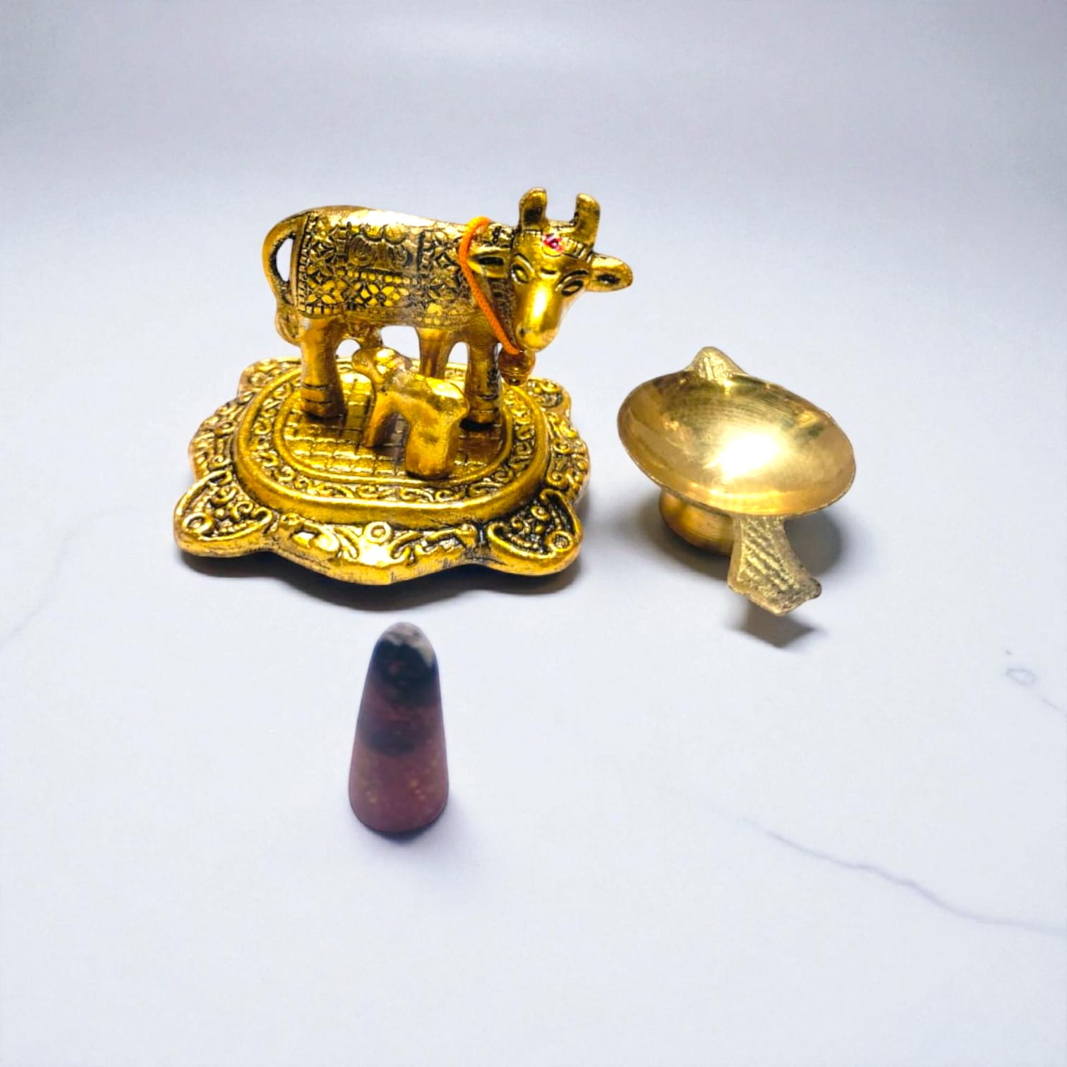 This Combo of Metal Cow and Deepak brings a touch of sacredness and positivity to your home or prayer space. The beautifully crafted metal cow represents abundance, nurturing energy, and divine blessings, making it a revered symbol in many households. Paired with an elegant Deepak that signifies light, purity, and spiritual awakening, this set creates a peaceful and devotional atmosphere.