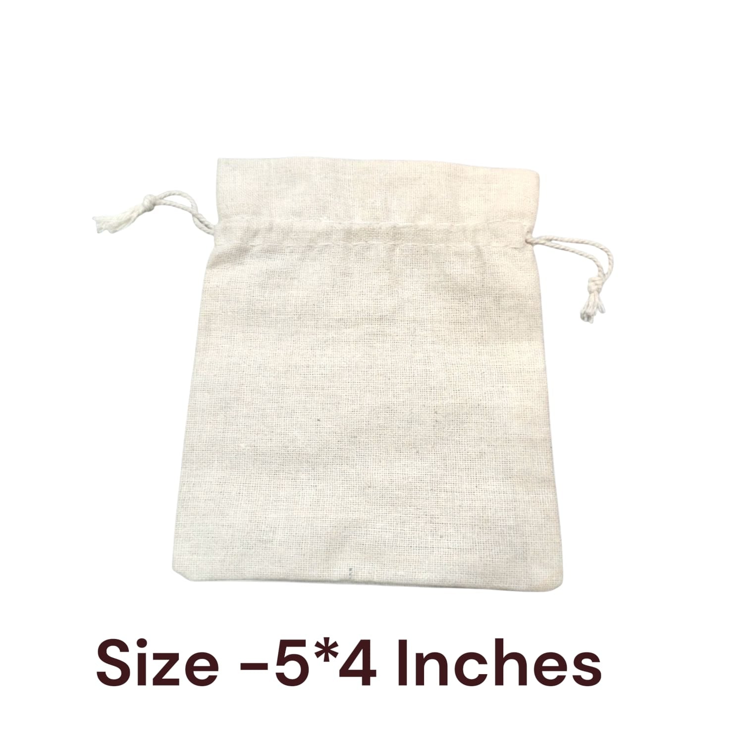 The Hariaura Cotton Potlies Set of 5 (5×4 inches) offers a charming and eco-friendly packaging solution perfect for gifting, return favors, festivals, and storing small essentials. Made from soft, high-quality cotton fabric, these compact potlies are lightweight, reusable, and gentle on the environment. Their convenient drawstring closure ensures easy opening and secure storage, making them ideal for holding coins, jewellery, dry fruits, chocolates, rakhi gifts, or small devotional items. With their elegant design and versatile use, these cotton potlies add a traditional touch to any occasion while providing practical everyday utility.
